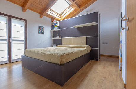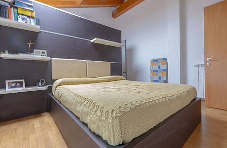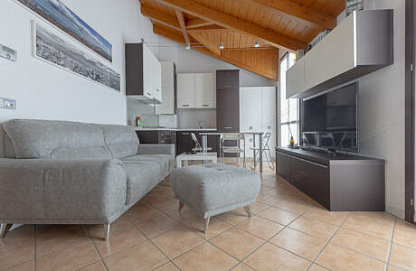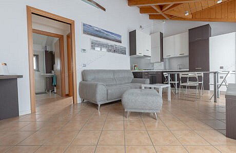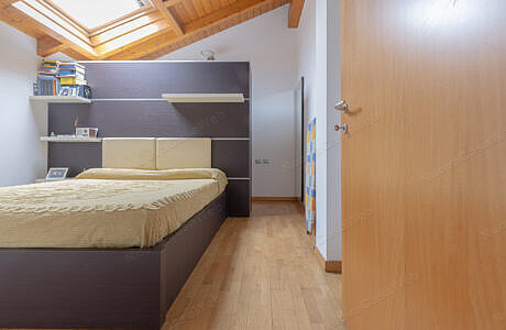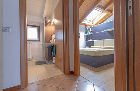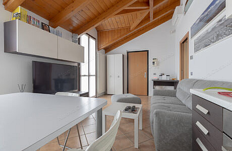 L’appartamento è composto da soggiorno con angolo cottura, disimpegno, bagno con box doccia e spaziosa camera matrimoniale con cabina armadio.
