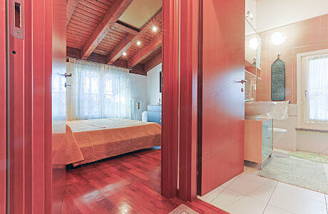 La zona notte, rifinita con parquet che dona calore e eleganza, conduce a una camera accogliente e a un bagno finestrato,