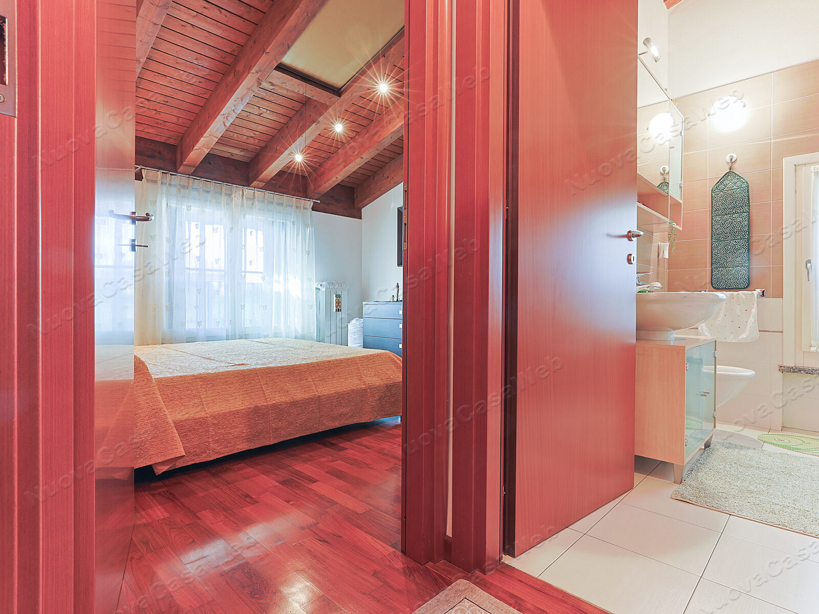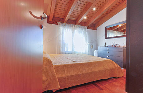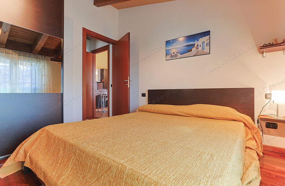 La zona notte, rifinita con parquet che dona calore e eleganza, conduce a una camera accogliente e a un bagno finestrato,