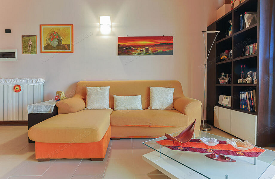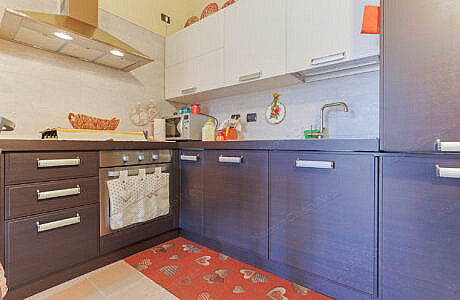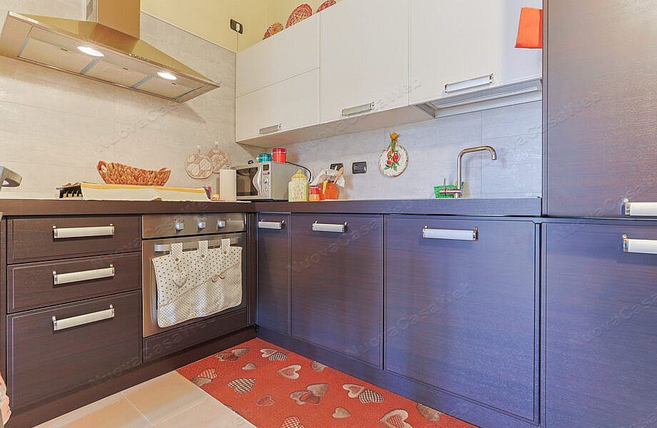 La zona giorno è caratterizzata da una moderna cucina a vista, perfetta per chi ama ambienti aperti e conviviali.