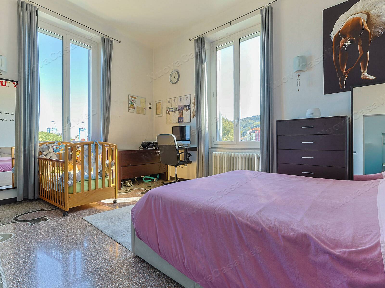 - Seconda Camera: Estremamente spaziosa, dotata di un comodo ambiente utilizzabile come ripostiglio/lavanderia e di un secondo balcone privato.